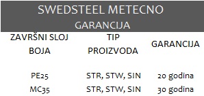 Trapezni i sinusoidni limovi Swedsteel-Metecno se proizvode od pocinkovanog, plastificiranog čelika švedskog proizvođača SSAB. Izuzetan kvalitet sirovog materijala – S250GD,S350GD-, pocinkovanost od 275 g/m2 cinka i završni površinski slojevi ( PE25, MC35 ) daju proizvod izuzetnog kvaliteta sa visokom klasifikacijom otpora na koroziju i UV zračenje.
