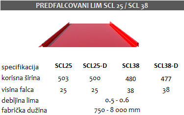 Predfalcovani limovi sa stojećim falcom su najnovije rešenje za moderan izgled krovova sa olakšanom i bržom montažom od tradicionalnih falcovanih krovnih pokrivača. Koriste se uglavnom na krovovima stambenih i komercijalnih objekata, sa padom od 14°.